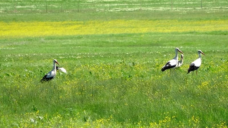 Her yıl binlerce kuş türüne ev sahipliği yapan Muş Ovası’nda kuluçkaya yatan leylekler, sundukları görsel şölenle renkli görüntüler oluşturuyor.