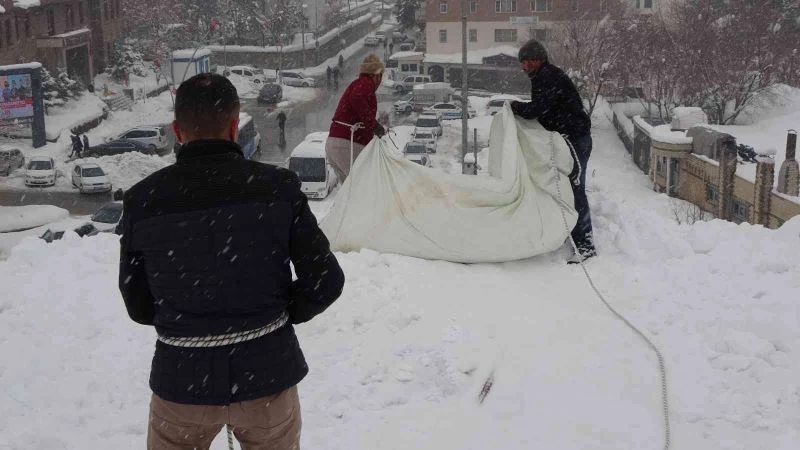 Muş’ta işçilerin çatılarda tehlikeli kar temizliği başladı