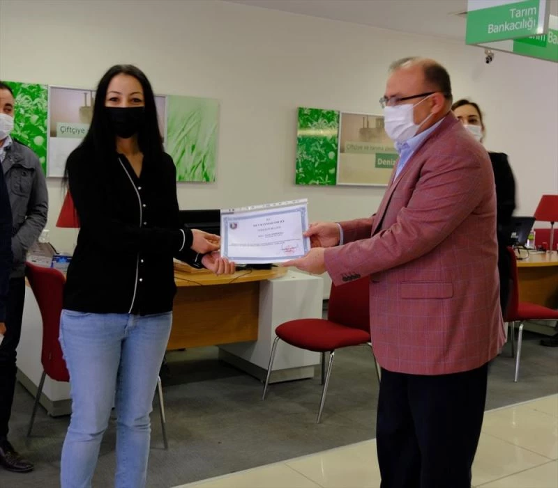 Mut Kaymakami Muammer Köken de vatandasi dolandirmaktan kurtaran Semercioglu'na bankaya giderek tesekkür belgesi verdi.