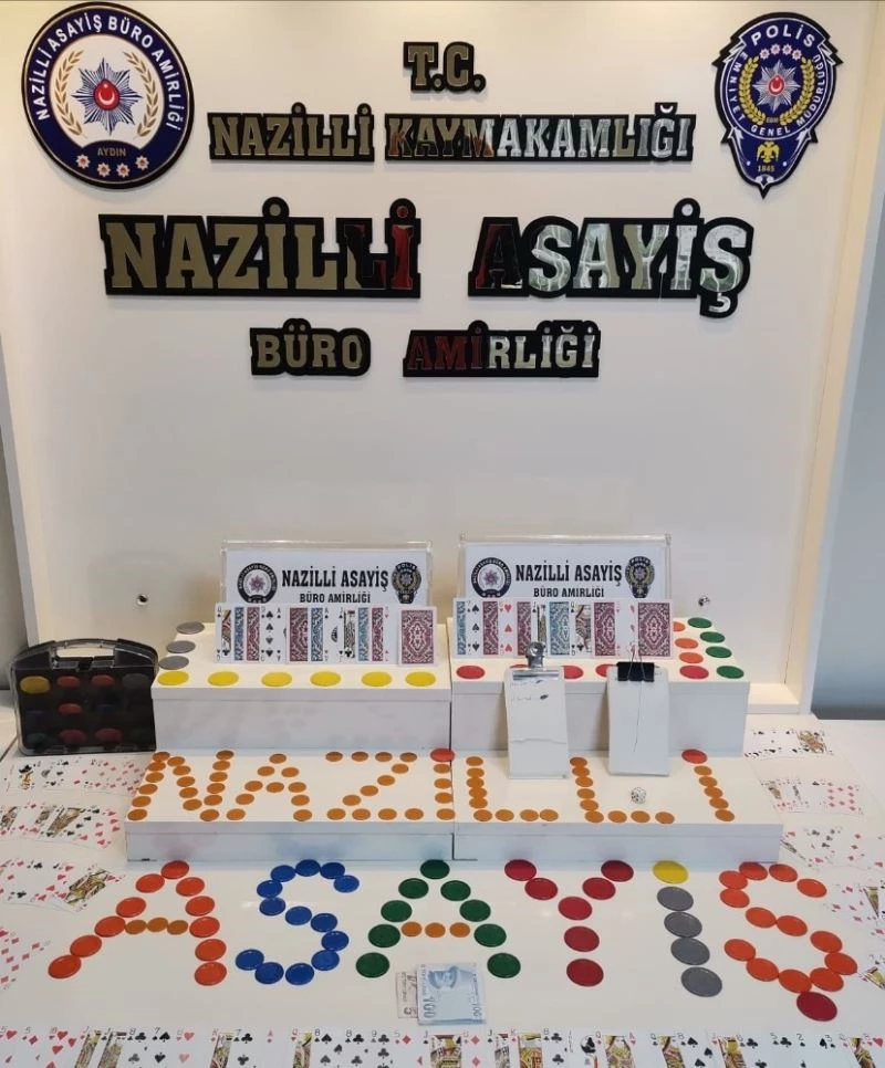 Edinilen bilgiye göre, Nazilli Turan Mahallesi 19 Mayıs Bulvarı üzerinde faaliyet gösteren bir Kıraathanede kumar oynandığını tespit edilmesi üzerine Nazilli İlçe Emniyet Müdürlüğü polis ekipleri harekete geçti. İşyerinde yapılan kontrolde 3 şahsın masa etrafında kumar oynadığı tespit edilirken, masa üzerinde bulunan 186 adet çeşitli renklerde pullar ve 105 TL para ele geçirildi. İşyeri sahibi A. Ç.’ ye Kumar Oynamak İçin Yer ve İmkan Sağlama suçundan adli tahkikat başlatılırken, kumar oynayan ve sokağa çıkma kısıtlamasını ihlal eden şahıslara toplam da 13 bin 458 TL idari para cezası uygulandı.