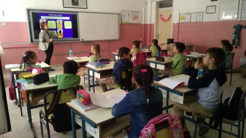 Aydın’ın Nazilli ilçesindeki anaokulu ve ilkokulunda eğitim gören öğrencilere Nazilli İlçe Sağlık Müdürlüğü Ağız Diş Sağlığı Birimi personeli tarafından sağlıklı beslenme ve ağız diş sağlığı eğitimi verildi.