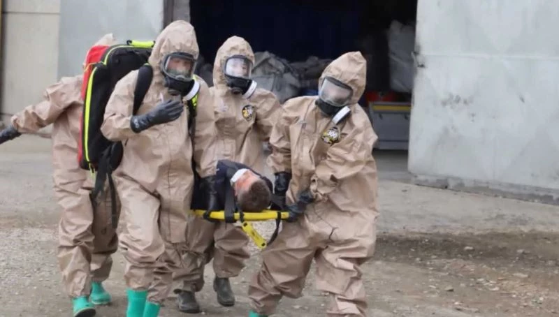 Edirne’de yangın sonrası tahliye esnasında asit yüklü varillerin etrafa dağılması ve yaralı işçileri kurtarılmasına ilişki gerçekleştirilen tatbikat nefes kesti.