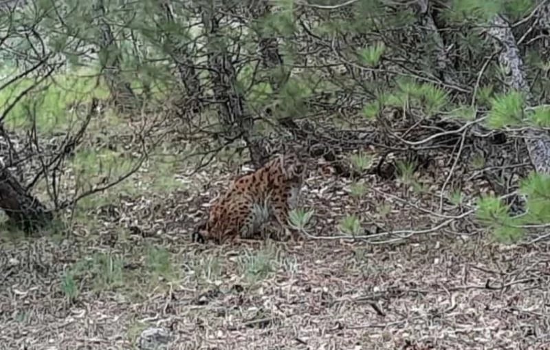 Türkiye’de nesli tehlike altında olup ‘ormanın hayaleti’ diye adlandırılan Anadolu vaşağı, ormanlık alanda görüntülendi.