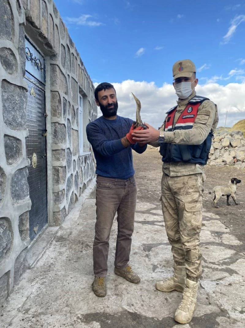 Veteriner hekim tarafından tedavi edilen nesli tükenmekte olan Küçük Balaban kuşu, Jandarma ekipleri tarafından Ardahan Doğa Koruma ve Milli Parklar İl Müdürlüğü ekiplerine teslim edildi.