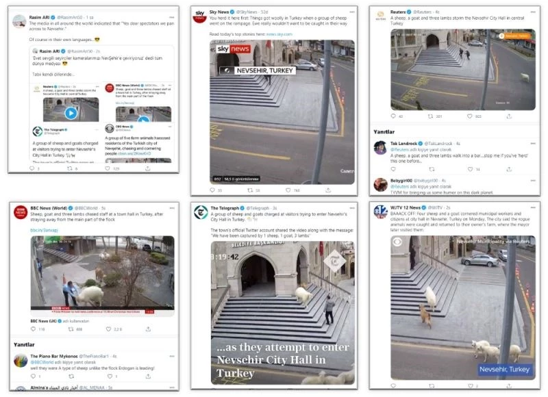 Nevşehir’de sürüden ayrılan 5 küçükbaş hayvanın belediye binasına girmeye çalışması anında ortaya çıkan görüntüler sosyal medyanın yanı sıra ulusal ve dünya basının da geniş yer buldu.