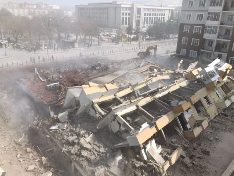 Niğde’de Kahramanmaraş merkezli 6 Şubat’taki depremler nedeniyle zarar gören 37 yıllık bina, kontrollü şekilde yıkıldı.