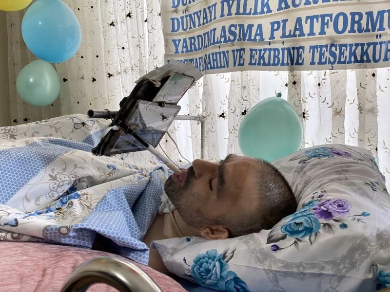 “Ben 10 yıl önce motosiklet kazası geçirdim. Boynumdan altı tutmuyor. Sadece ağzıma aldığım kalem ile tablet ve telefonumu kullanabiliyorum. Benim bütün dünyam telefon ve tablettir. Normal bir insanın yapabileceği her şeyi ben ağızıma aldığım kalemle yapıyorum. Sağlığınızın kıymetini bilin. Biz engellilere acıyarak bakmanızı istemiyoruz. Sadece sevgi ve şefkat gösterilmesi bize yeterlidir. Benim hayatım bu. Yılda dışarıya iki kez çıkıyorum. Ama dışarı özlemimi bu tablet ve telefonla gideriyorum. Tablet ve telefonumda, oyun oynuyorum, facebook’a giriyorum, haberleri, dizi veya film izliyorum. Bana destek olan Dünyayı İyilik Kurtaracak Platformu ve gönüllülerine, bütün hayırseverlere teşekkür ederim.”