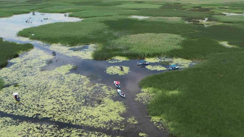 Türkiye’nin en büyük nilüfer deryasını bünyesinde barındıran Çivril Işıklı Gölü’nde görsel şölen başladı. Yeşille mavinin buluştuğu eşsiz doğasıyla doğaseverlerin gözdesi olan gölde, aynı anda açılan 20 tur teknesinin nilüfer tarlalarıyla buluştuğu anlarda büyüleyen görüntüler oluşturdu.