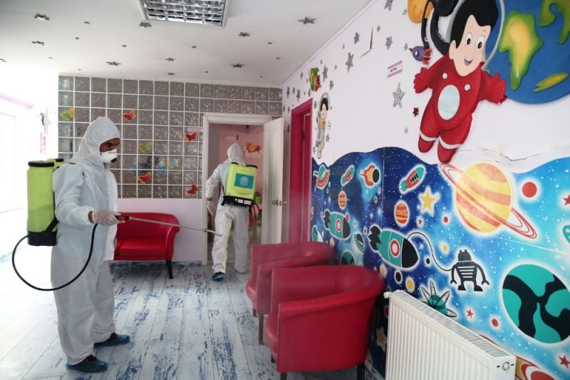Nilüfer Belediyesi, korona virüs salgın sürecinde kapalı olan ve 1 Haziran itibariyle açılmasına izin verilen kreş ile anaokullarını dezenfekte ediyor.