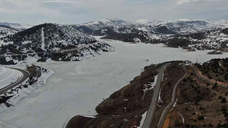 Sivas’ta sert geçen kış mevsiminde donan Pusat Özen Baraj Gölü, Nisan ayı gelmesine rağmen halen çözülmedi.