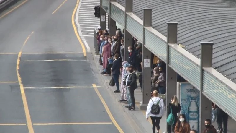 Normalleşmenin ilk sabahı metrobüs durağında insan yoğunluğu