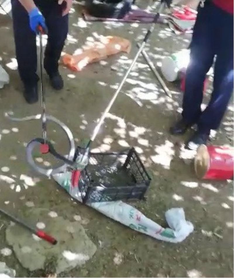Bahçecik Mahallesinde bulunan bir ikametin odunluğuna giren yılanı fark eden vatandaşlar durumu itfaiye ekiplerine bildirdi. Kısa sürede olay yerine gelen Adıyaman Belediyesi İtfaiye Müdürlüğü ekipleri, yılan yakalama aparatı ile yaklaşık 1,5 metre uzunluğundaki siyah yılanı kontrollü bir şekilde yakaladı. Yakalanan yılan daha sonra kafese konuldu. İtfaiye ekipleri yakaladıkları yılanı daha sonra kent merkezinden uzak kırsal bir alana bırakarak doğaya salıverdi.