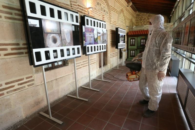 Kırsal Hizmetler Müdürlüğü ekipleri, Odunpazarı Belediyesi’ne ait Osman Yaşar Tanaçan Fotoğraf Galerisi, Tayfun Talipoğlu Daktilo Galerisi, Ahşap Eserler Galerisi, Yeşil Efendi Konağı Atatürk ile Bir Gün Galerisi, Mustafa Abdülcemil Kırımoğlu Kırım-Tatar Galerisi ve Lületaşı Galerisi’nde dezenfeksiyon çalışması gerçekleştirdi. Tek tek dezenfekte edilen galeriler, tekrar misafirlerini ağırlamaya hazır hale getirildi.