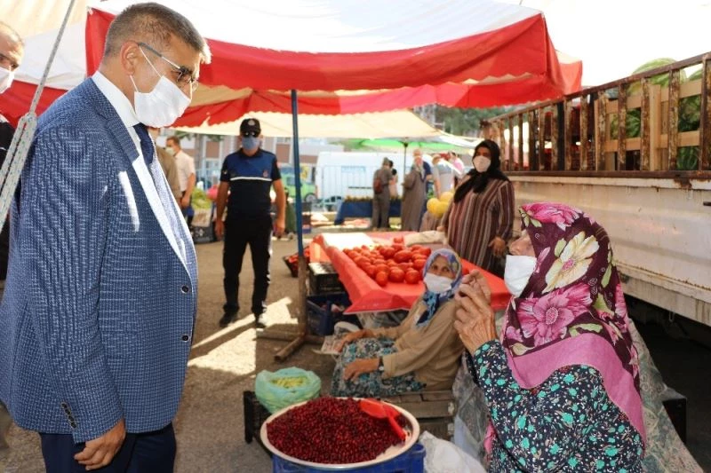 İlk olarak semt pazarını gezen Vali Gürel, pazarcı esnafı ve vatandaşları sosyal mesafe ile maske takmaları konusunda uyarıda bulundu. Bazı pazarcı esnafları Gürel’e istek ve şikayetlerini ileterek, denetimlerden memnun olduklarını belirtti.