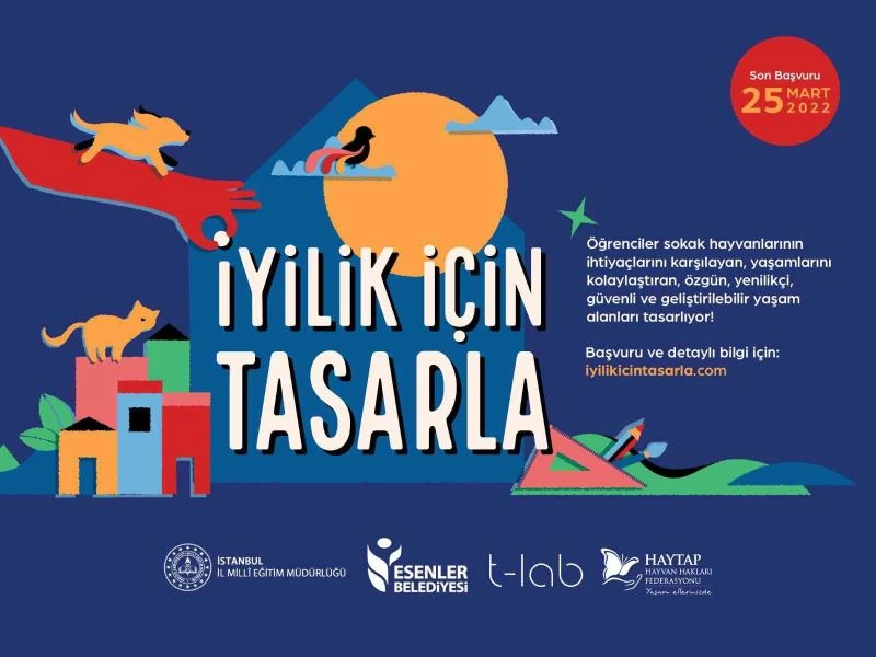 Esenler Belediyesi, “İyilik İçin Tasarla” yarışması düzenliyor. Temel eğitim seviyesinde öğrenim gören 3, 4, 5, 6, 7 ve 8. sınıf öğrencilerine yönelik yapılan bu tasarım yarışmasında öğrenciler; yaşadıkları çevredeki hayvanların günlük yaşamlarını gözlemleyerek hayvanların ihtiyaçlarını karşılayacak, yaşamlarını kolaylaştıracak, özgün, yenilikçi, geliştirilebilir yaşam alanları tasarlayacak. Köpek, kedi ve kuş olmak üzere üç kategoriden oluşacak yarışmaya başvurular 9 Şubat 2022 tarihinde başladı. Başvuru süresi 25 Mart 2022’de bitecek.