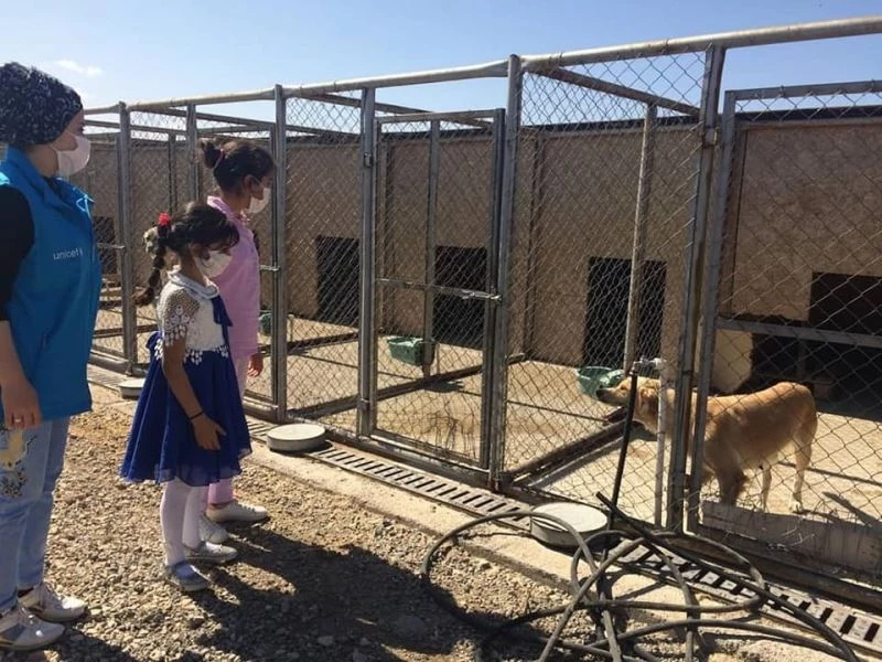 Kilis’te, öğrenciler 4 Ekim Hayvanları koruma günü nedeniyle hayvan barınağını ziyaret etti.