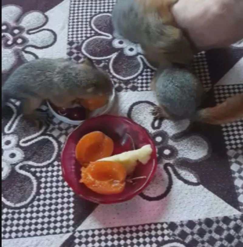 Sivaslı gençler terk edilen yavru sincapları evlerinde süt ve meyvelerle besliyor.