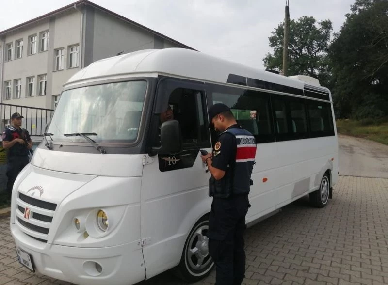 Düzce’de jandarma ekipleri öğrenci taşıyan servis araçlarını denetledi.