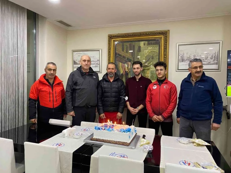 Aynı zamanda Türkiye Olimpiyat Hazırlık Merkezi Erzurum TOHM sporcusu olan iki milli yıldız için pasta kesimi yapılarak olimpiyatlara katılmaları kutlandı.