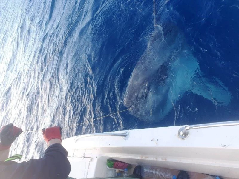Muğla’nın Datça ilçesinde balık avlamak için denize açılan balıkçıların oltasına takılan yaklaşık 400 kilogram ağırlığındaki Ay Balığı, tekrar denize bırakıldı.