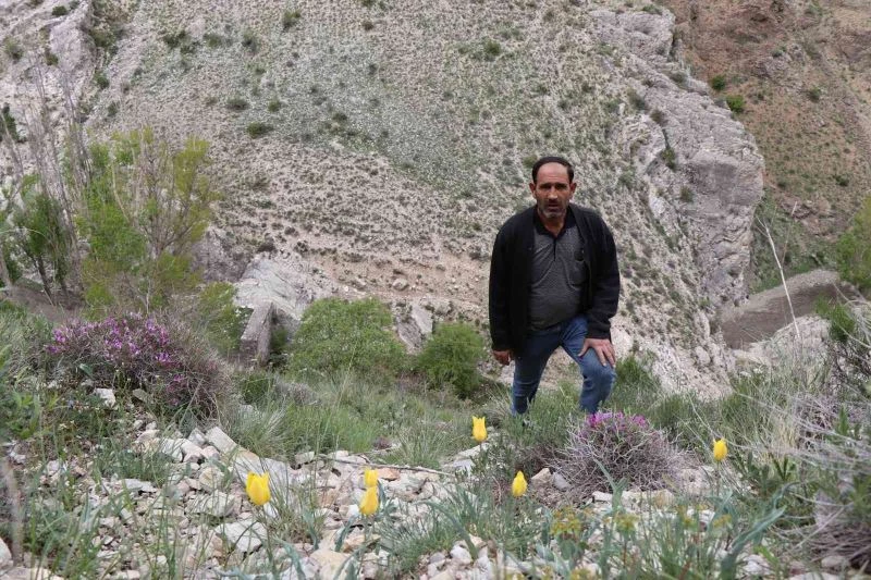 Erzurum’un Oltu ilçesinde Sitare Dağı’nda açan sarı laleler, lale dağı olarak da bilinen Sitare Dağı’nı süslemeye başladı.