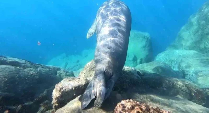 Ölü taklitti yapan Akdeniz foku görenleri şaşkına çevirdi