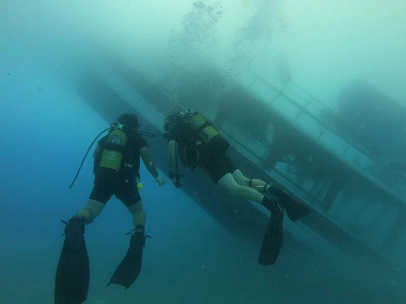 DEGAK ekipleri batan tekneyi su altında görüntüledi. Görüntülerde teknenin arka kısmının denizin dibine oturduğu başının da havaya doğru kalktığı, teknede bulunan masa ve sandalyelerin dağıldığı bazılarının da yerinde koptuğu görülüyor.