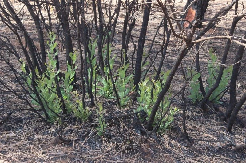 Orman yangınında yanan ağaçların kökleri filizlendi