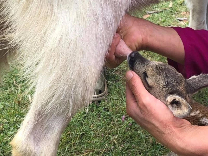 Ormanda annesini kaybeden yavru karaca keçi besiciliği yapan aileye teslim edildi
