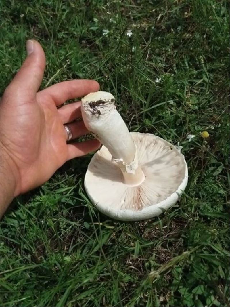 Tokat’ın Erbaa ilçesine bağlı Canpolat köyünde mantar toplamaya çıkan Ali San beklemediği bir manzara ile karşılaştı. Daha önce bu kadar büyüklükte bir mantara rastlamadıklarını ifade eden San, mantarı henüz tüketmediklerini söyledi. Zehirli olabilme ihtimaline karşı uzman bir kişiye mantarı göstereceklerini ifade eden San, “Ailecek Canpolat köyüne gezmeye gimiştik. Ovada mantar toplamak için gezerken bu mantarı fark ettik. İlk gördüğümde çok şaşırdım. Yaklaşık 1,5 kilogram geliyor. Zehirli olup olmadığını bilmiyoruz. O nedenle bu işin uzmanı olan kişiye göstereceğiz” dedi. 4 yaşındaki Eylül ise dev mantarla poz vererek yaşadıkları anıyı ölümsüzleştirdi.