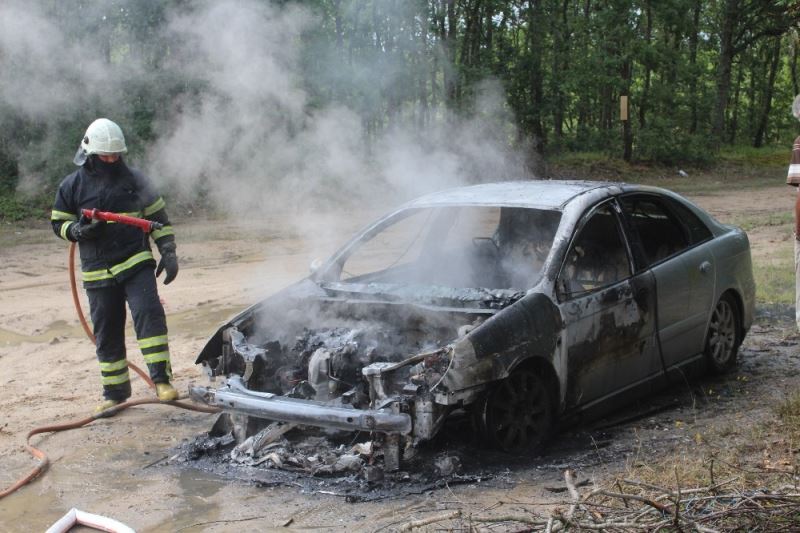 Tekirdağ’ın Kapaklı ilçesinde ormanlık alanda park halindeki bir araçta yangın çıktı.