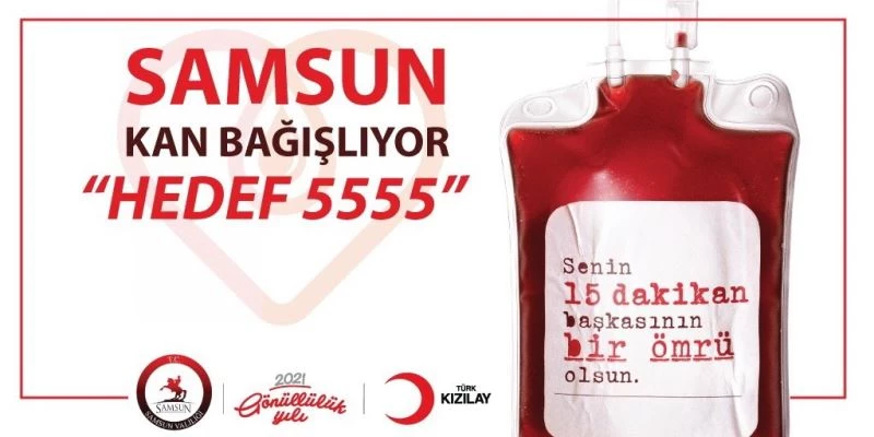 Orta Karadeniz Bölgesi’ndeki sağlık kuruluşlarında tedavi gören hastaların kan ihtiyaçlarının sorunsuz karşılanması için bölgede yıllık 130 bin ünite kan bağışı yapılması gerekiyor. Ancak bölgede Türk Kızılay’ına yıllık 117 bin ünite kan bağışı yapılıyor. 13 bin ünite kan açığının kapatılması için çeşitli kampanyalar düzenleniyor. Bu kapsamda “Samsun Kan Bağışlıyor, Hedef 5555 Kan Bağışı” isimli kampanya başlatıldı.