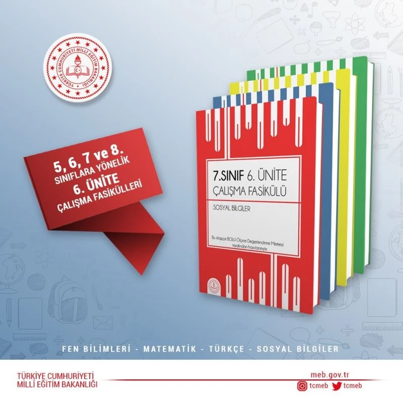 Ortaokul 5, 6, 7 ve 8. sınıflar için hazırlanan çalışma fasiküllerinin 6. üniteleri http://odsgm.meb.gov.tr/ adresinde erişime açıldı. Millî Eğitim Bakanlığı, eğitim öğretim faaliyetlerine destek olmak amacıyla yıl içinde kazanım kavrama testleri, LGS için örnek sorular ve çalışma soruları; 5, 6 ve 7. sınıflar için beceri temelli testler; 9, 10, 11 ve 12. sınıflar için tekrar testleri; ilköğretim 2, 3 ve 4. sınıflar için çalışma soruları; 5, 6, 7 ve 8. sınıflar için 1, 2, 3, 4 ve 5. üniteleri kapsayan çalışma fasikülleri gibi çok çeşitli kaynak hazırlayarak öğretmen ve öğrencilerle paylaşmıştı.