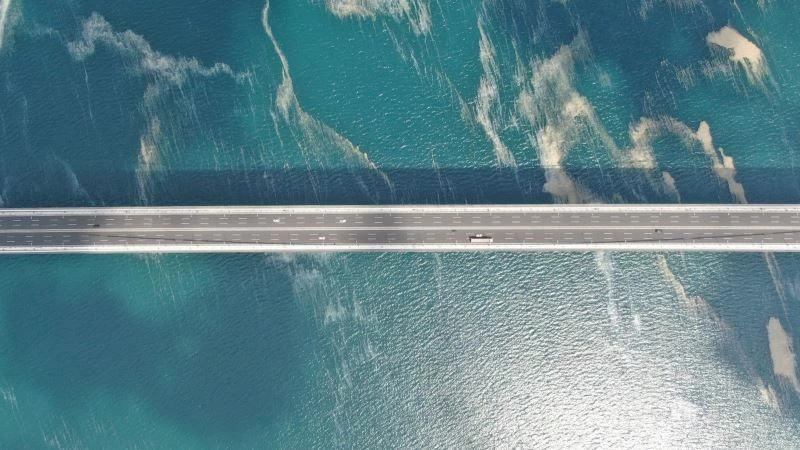 Osmangazi Köprüsü’nü saran deniz salyası havadan görüntülendi