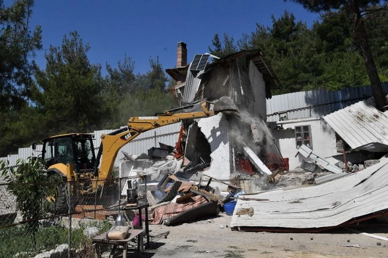 Osmangazi Belediyesi, Avdancık Mahallesi’nde orman arazisi üzerine kaçak olarak inşa edilen 2 katlı evi yıktı.