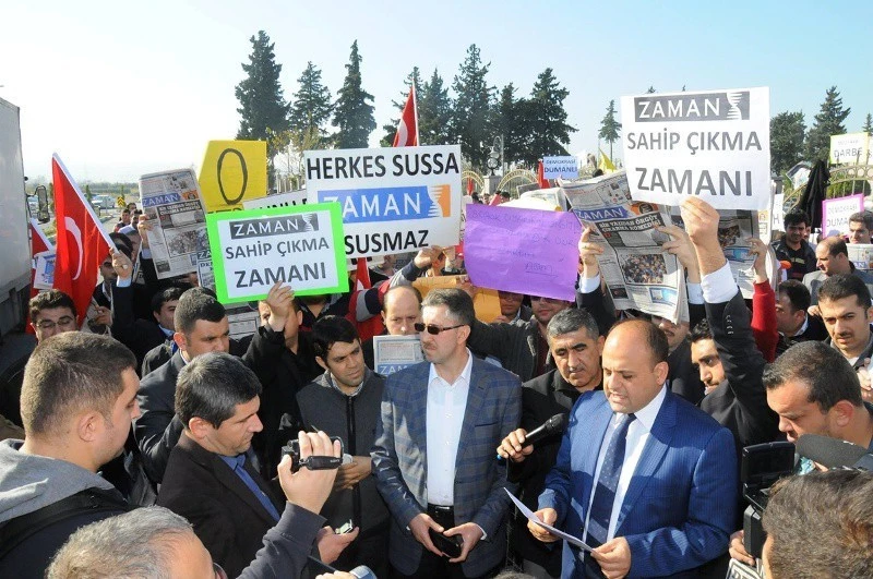 Osmaniye Adliyesi önünde ki yolda toplanan yaklaşık 500 kişilik kalabalık, başta İstanbul olmak üzere 13 ilde düzenlenen ve aralarında Zaman Gazetesi Genel Yayın Yönetmeni Ekrem Dumanlı?nın da bulunduğu 31 kişinin gözaltına alınmasını protesto etti. Ellerinde Türk Bayrağı, Zaman Gazetesi ve ?Zaman sahip çıkma zamanı?, ?Bunu da yaz tarih?, ?Demokrasi dumanı? ve ?Medyaya darbe? gibi dövizleri taşıyan kalabalık sık sık ?Özgür Basın Susturulamaz? sloganı attı. Operasyona tepki gösterenlerin arasında gençlerin ve kadınların da, kuran okuyup dua ettikleri gözlendi.Toplanan Zaman okurları adına konuşma yapan Avukat Gazi Kozanoğlu, ?Özgür basına yapılan operasyonu Anadolu insanları olarak kabul etmiyoruz. Bu operasyonu yalnızca basına yapılmış olarak değil, aynı zamanda Anadolu insanın hürriyetini tehdit eden bir hamle olarak görüyoruz. Bu operasyonlar üst üste memleketin güvenliğinde, eğitiminde, iş dünyasında, sivil toplum kuruluşlarında da yapıldı ve şimdide bir ülkenin gözü, kulağı, esi olan basına kadar sıçradı. Bizler anlıyoruz ki! Anadolu insanının hürriyeti ipotek altına alınmaya ve ülkede bir korku ve baskı imparatorluğu kurulmaya çalışılmaktadır. Çağımızda böyle bir uygulamanın ne hukukta ne de demokraside, kısacası insanların özgürce yaşadığı hiç bir toplumda, yeri kalmamıştır ve kesinlikle kabul edilemez bir haksızlıktır, hukuksuzluktur, vicdanları sızlatan çağ dışı an-ti demokrat bir uygulamadır. Devlet adaletin teminatıdır ama ayaklar Altın`da Devlet hukukun teminatıdır ama ayaklar Altın`da Devlet emniyetin teminatıdır ama ayaklar Altın`da Devlet Hürriyet`in teminatıdır ama Ayaklar Altın`da. Anadolu insanı bu ülkeye sonradan dahil edilen bir toplum değildir. Ve bu ülke bedelini istiklal harbinde, Çanakkale`de ve daha öncesinde, özgürlüğü adına, hürriyeti adına misliyle ödemiştir. Son olarak da belki unutmuşlardır, bizler Mehmet Akif`in ruhu şad oldun istiklal marşını yazan neslin evlatlarıyız, istiklal marşını okuyarak ve inanarak dinleyen nesilleriz. Bizler ekmeksiz yaşarız ama hürriyetsiz yaşayamayız. Bizler evsiz yaşarız ama vatansız bayraksız yaşayamayız. Bizler elbisesiz yaşarız ama onursuz yaşayamayız. Bizler Anadolu insanları yaşamak için değil yaşatmak için yaşarız ve bu ülkede adaleti, Hürriyeti, huzur yaşatmak için yaşayacağız. Tekrar hatırlatıyoruz daima adaleti savunacağız, hürriyetimiz için yaşayacağız. Ve de korkmuyoruz! Dimdik! Güçlünün değil, haklının yanında olacağımıza söz veriyoruz!? dedi. Grubu destek vermek için BBP İl Başkanı İsmail Gümüş, BBP Merkez İlçe Başkanı Fuat Arıkan, CHP Merkez İlçe Başkanı Ali Temuroğlu, CHP Kadın Kolları Başkanı Dilek Güvenç ve Türk Anneler Derneği Osmaniye Şube Başkanı Birgül Keskiner ve 30?a yakın sivil toplum kuruluşlarının üyeleri destek olmak için grubun yanında oldu.Basın açıklamasının ardından İstiklal Marşını okuyan gurup olaysız bir şekilde dağıldı.