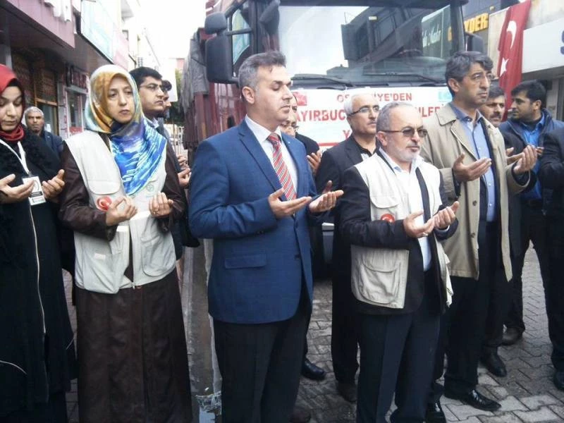 İçerisinde kıyafet, erzak, temizlik ve un gibi malzemelerin yer aldığı yardım tırı, yapılan duanın ardından yola çıktı.