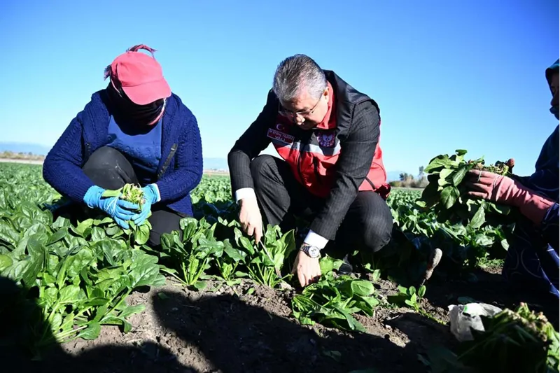 Yılmaz, etkinlikte bir araya geldiği üreticiler ve tarım işçileriyle sohbet etti, ıspanak hasadı yaptı.