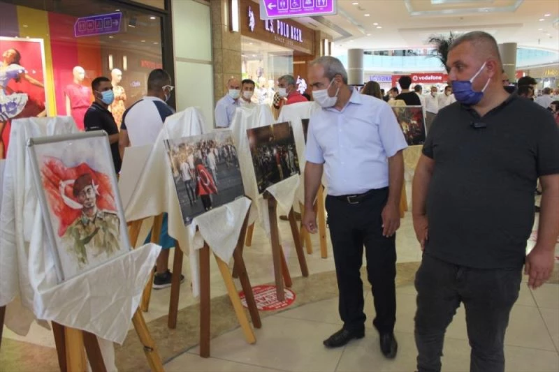 Sergide 15 Temmuz darbe girişimine karşı halkın kahramanlık destanının anlatıldığı karakalem, yağlı boya ve sulu boyadan oluşan 63 eser yer alıyor.