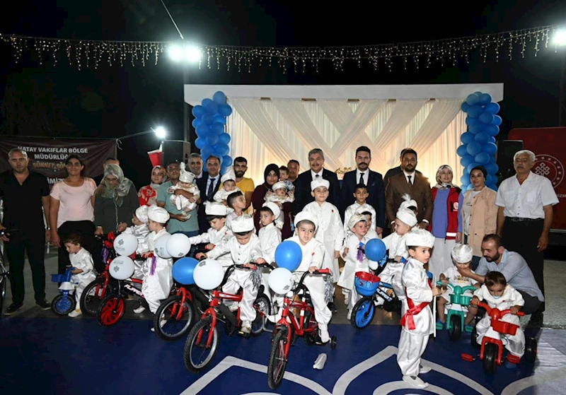 Hatay Vakıflar Bölge Müdürü Adem Bozkurt'un da katıldığı etkinlikte sünnet olan çocuklara bisiklet hediye edildi.