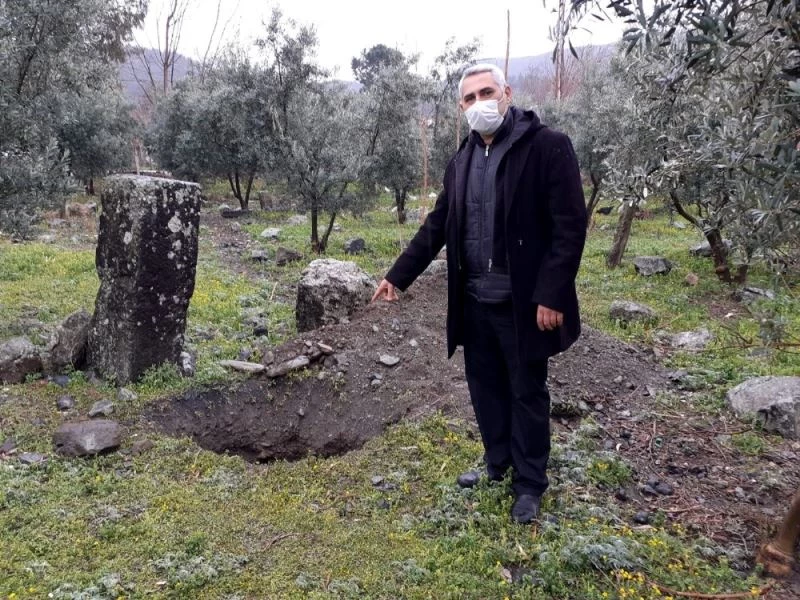 Mezarların kimlere ait olduklarını bilmediklerini ifade eden mahalle muhtarı Ömer Pehlivan, “Mahalle sakinleri haber verdi. Bende eşilen mezarın yanına geldim. Burası tarihi bir mezardır. Kim ya da kimler tarafından eşildiğini bilmiyoruz. Buradaki mezarların kimlere ait olduğunu bilmiyoruz. Çoğu belirsiz mezar bunların. İsim falan yok taşla yapılmış mezar bunlar, biz yetkililerden buranın düzenlenmesi için yardım talep etmiştik. Zeytin ağacı falan dikildi, düzenlendi. Ondan sonra mezarlık olduğu biraz belli olamaya başladı. Mahalle sakinleri kendi aralarında konuşur, burada altın var diye. Bundan dolayı cahiller gelip kazmışlar” diye konuştu.