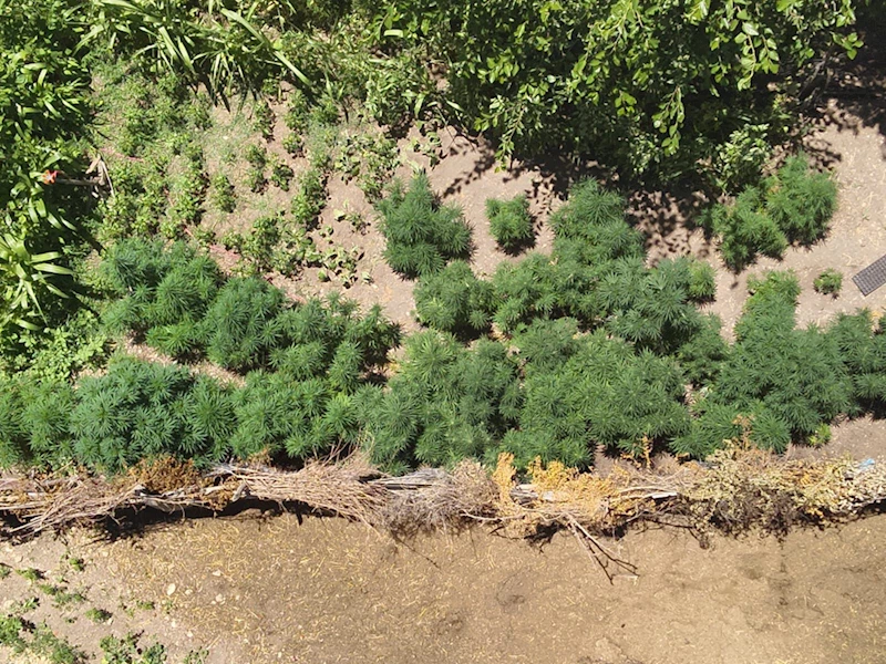 Evin bahçesinde ekili 50 kök Hint keneviri ele geçirildi. Evde yapılan aramada ise 449 gram esrar ile 169 gram Hint keneviri tohumu bulundu, A.A. gözaltına alındı.