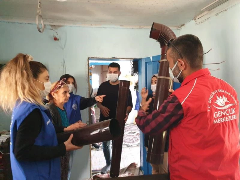 Kapı, pencere ve mobilyaları tamir eden gençler, yaşlıların odunlarını kırıyor, sobalarını kuruyor ve evlerini temizleyerek yemeklerini pişiriyor.
