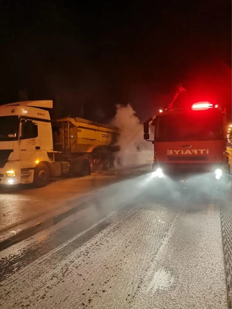 OSMANİYE - Osmaniye'de seyir halindeki tırın alev alan lastikleri itfaiye ekiplerince söndürüldü.