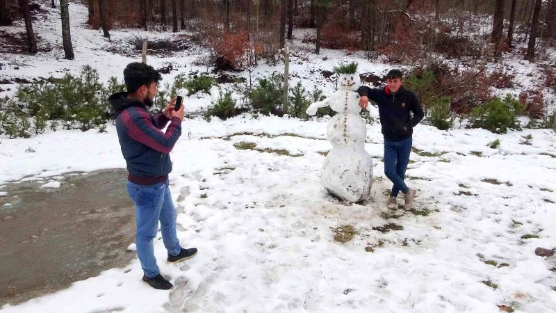 Yaylanın beyaza büründüğünü ifade eden vatandaşlar, kardan adam yaparak karın tadını çıkardıklarını belirttiler.