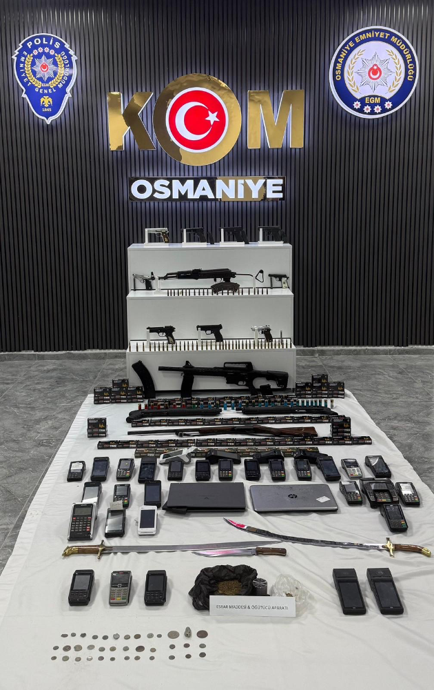 İl Emniyet Müdürlüğü ekiplerince, Osmaniye Cumhuriyet Başsavcılığı koordinesinde tefecilik, silah ticareti, suçtan kaynaklanan malvarlığının aklanması ve Vergi Usul Kanunu’na muhalefet suçlarına yönelik 6 ilde eş zamanlı operasyon düzenlendi. İstanbul, İzmir, Hatay, Kahramanmaraş, Şanlıurfa ve Osmaniye’de gerçekleştirilen operasyonda, 795 kişi ve 46 şirkete ait, toplam 10,2 milyar TL işlem hacmine sahip hesap hareketleri incelendi. Operasyon kapsamında çok sayıda ruhsatsız silah, mühimmat, uyuşturucu madde, tarihi eser ve POS cihazı ele geçirildi. Ayrıca 1,1 milyar TL işlem hacmine sahip banka hesapları ile 16 taşınır ve taşınmaz malvarlığına el konuldu. Gözaltına alınan 24 şüpheli, emniyetteki işlemlerinin ardından adliyeye sevk edildi. Şüphelilerden 15’i çıkarıldıkları mahkemece tutuklanırken, 9’u hakkında adli kontrol kararı uygulandı. Yetkililer, kentte huzur ve güvenliğin sağlanmasına yönelik çalışmaların kararlılıkla sürdürüleceğini bildirdi.