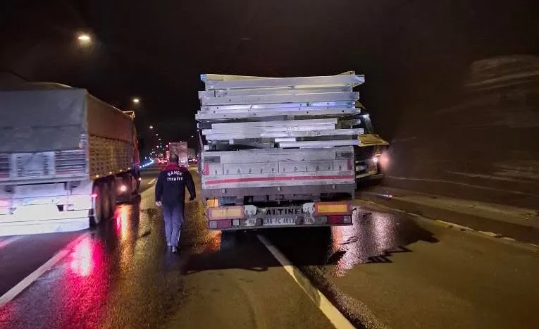 Osmaniye’nin Bahçe ilçesinde TIR’ın makaslaması sonucu meydana gelen kazada sürücü hafif şekilde yaralandı. Kaza, Tarsus Adana Gaziantep Otoyolu Kızlaç Tüneli’nde meydana geldi. Sürücüsü henüz öğrenilemeyen 06 ET 6528 plakalı çekiciye bağlı 06 FC 4013 Plakalı Dorse, sürücüsünün direksiyon hakimiyetini kaybetmesi neticesinde makaslayarak tünel duvarına çarptı. İhbar üzerine bölgeye sağlık ve kurtarma ekipleri sevk edildi. TIR kabininde sıkışarak yaralanan sürücü, olay yerindeki ilk müdahalenin ardından ambulansla Bahçe Devlet Hastanesi’ne kaldırıldı. Kaza nedeniyle tüneldeki ulaşım bir süre kontrollü şekilde sağlandı. Aracın çekici yardımıyla olay yerinden kaldırılmasının ardından ulaşım normale döndü. Jandarma kazayla ilgili soruşturma başlattı.