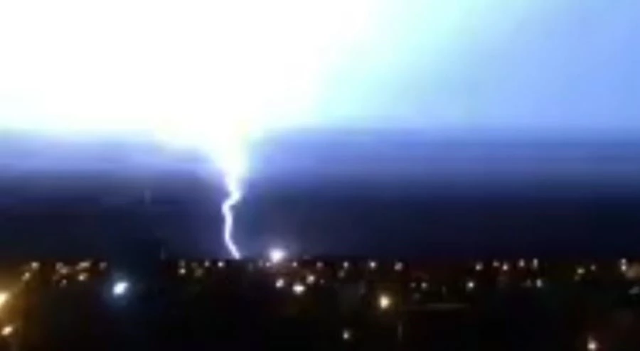 Kadirli ilçesinde gece saatlerinde yağan sağanak öncesi, şimşekler gökyüzünü aydınlattı. Yıldırımın ilçe merkezine yakın bir bölgeye düşme anı ise saniye saniye kameraya yansıdı.