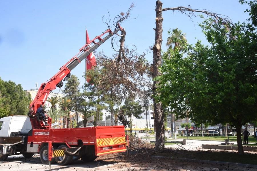 Daha önce de Devlet Bahçeli Meydanındaki Atatürk Anıtı alanında bulunan bir çam ağacı kuruduğu için kesilmişti.