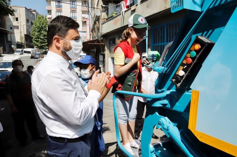 Mahallesinde çöp kamyonu ile gezinti yapan küçük kızın mutluluğu görülmeye değerdi. Belediye Başkanı Mevlüt Öztekin küçük kıza, ”Üniformanı giydin, artık bu sokak senin sorumluluğunda. Abilerin çöpleri almaya her geldiğinde sana el sallayacaklar” dedi.